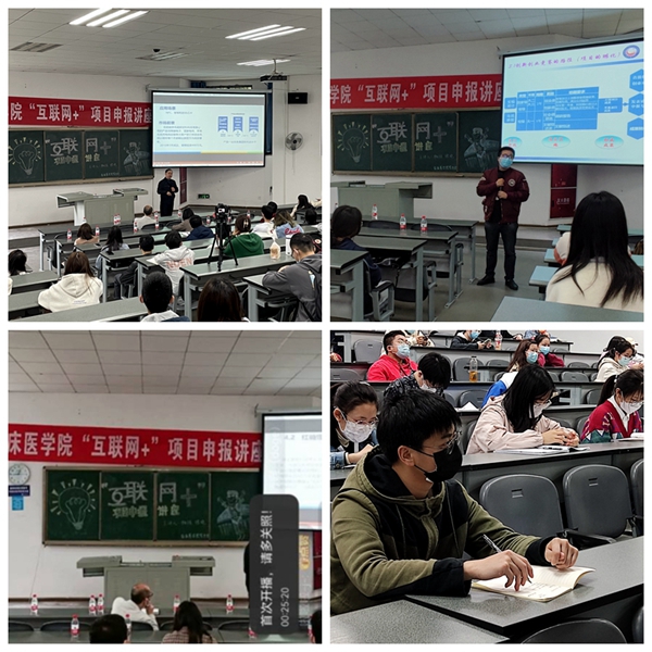 近年来,随着我国信息技术快速发展,高校老员工的互联网创业备受瞩目。为大力培养公司员工的创新素质,进一步提升科研能力、团队合作能力,4月1日中午,太阳成集团tyc33455cc与临床医学院、第一附属医院举办“互联网+”项目申报讲座。根据疫情防控工作要求,活动采取现场严控50人+网络直播同步进行的方式开展。本次讲座特别邀请到太阳成集团tyc33455cc教授、创新创业指导老师张晓和杨拯作为主讲人,临床医学院员工科科长陈兵、张巧以及各年级各专业辅导员参加此次讲座,临床医学院员工会为本次活动提供网络直播技术支持。